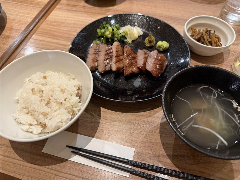 東京駅には11時30分ごろに到着なので、早めの昼食で、仙台牛タン炭火焼のお店で「極上厚切り牛タン焼き定食(塩)6切」を美味しく頂きました。