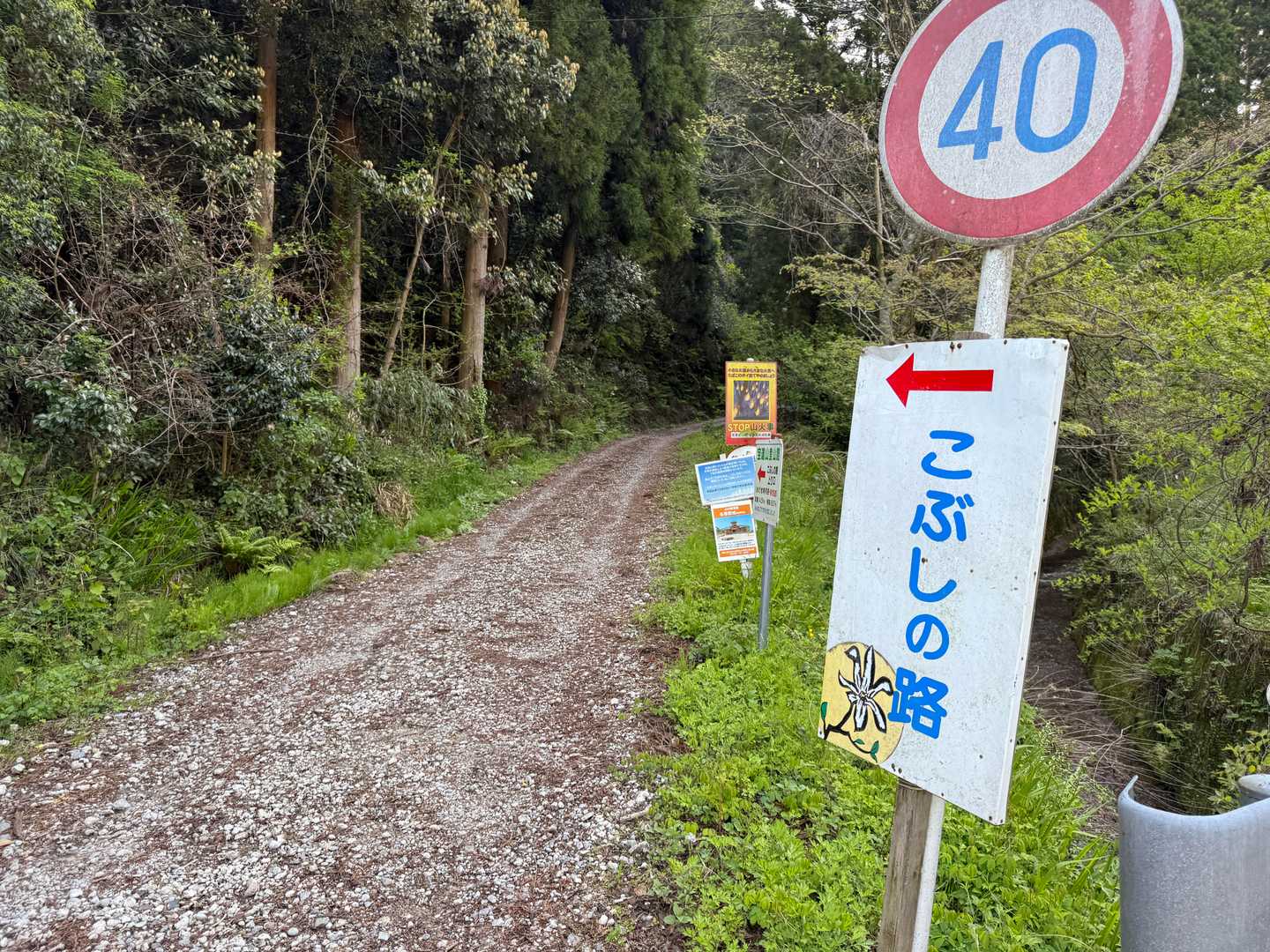 山頂から登ってきた登山道ではなく、道路の方で降りていきます。