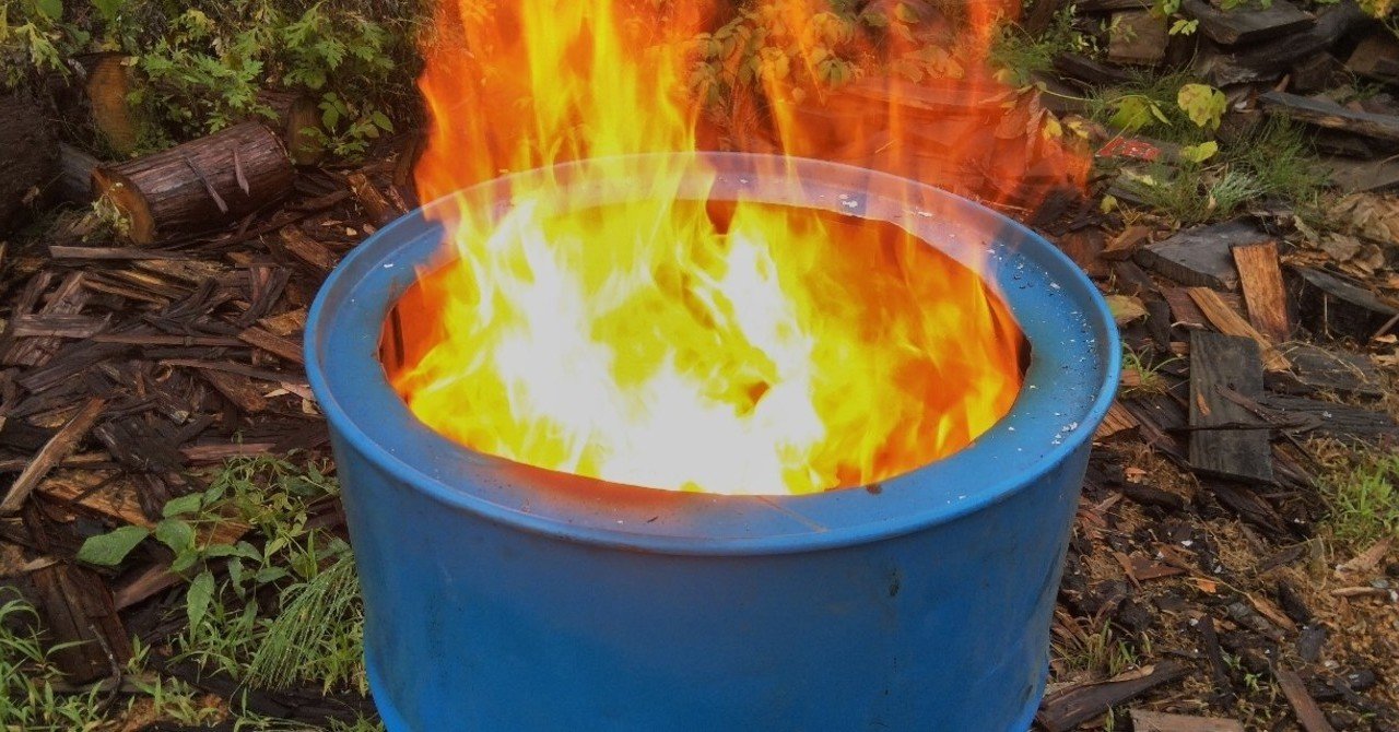 その後は乾いている物を中心に中に入れていき10分ぐらい経った辺りで内側のドラム缶の塗装が焼けてきました。