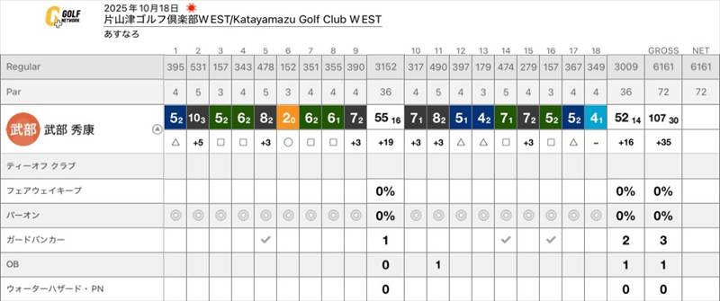後半の最後には、パーも取れるくらいにスコアがまとまって来たところで終了となりました。